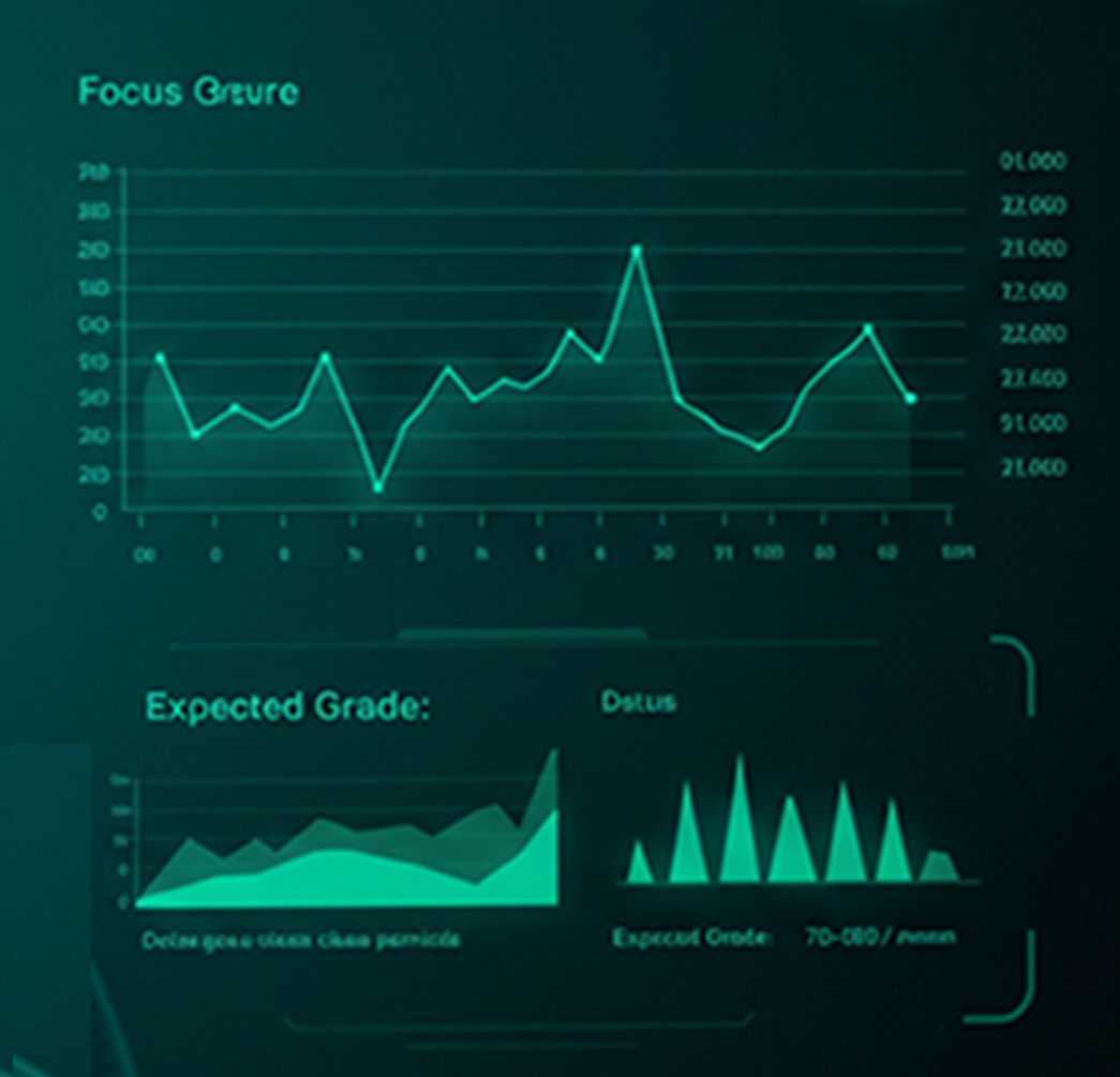 It relies on machine learning techniques to analyze academic, behavioral, and psychological variables, with the goal of predicting each student's upcoming exam grades. Analytics include: